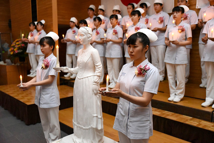 看護の知識・技術を習得し、看護の実践者として科学的・倫理的に遂行する能力を養います。保健医療福祉のチームの一員として、多様なニーズに対応できることを目指します。※赤い文字は臨地実習